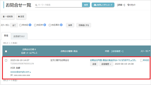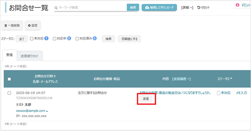 お問い合わせフォームからの問合せを店長ナビ上で管理・返信できます。