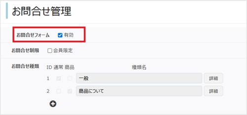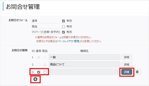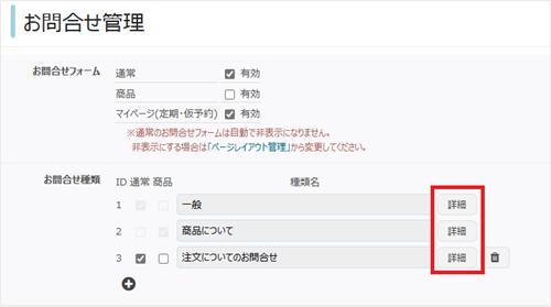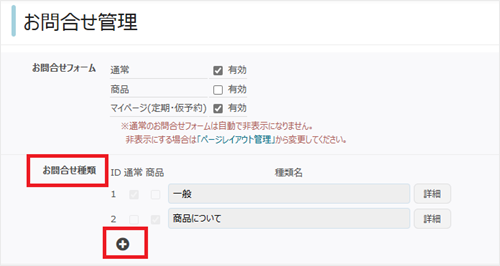※「通常」は通常のお問合せフォーム、「商品」は商品詳細ページの[この商品について問い合わせる]クリック先の選択肢として表示されます。
