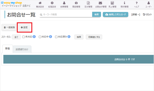 店長ナビ左側「お問合せ」欄、またはお問合せ管理>お問合せ一覧を開きます。