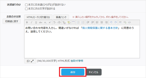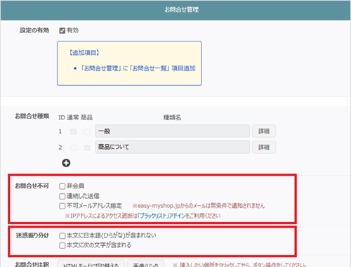 また、問合せフォームの利用可否や迷惑な問合せの振り分けも設定できます。