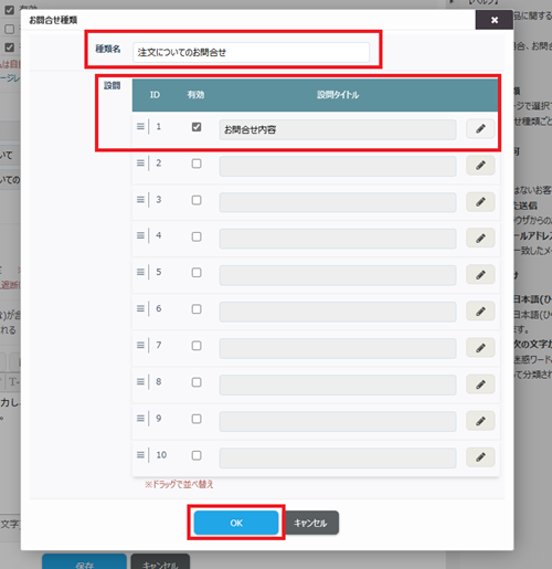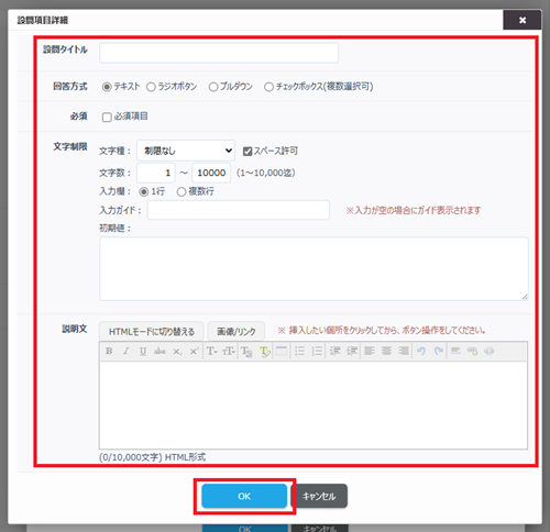 設問タイトルや回答方式などを登録して[OK]を押します。