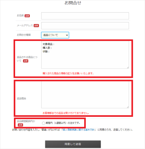 例) 「注文に関するお問合せ」、「納期に関するお問合せ」、「修理に関するお問合せ」など