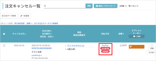 確定翌月以降(月跨ぎ)の取消処理(クレジットカード決済 、PayPay決済)