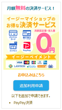 ⇒導入・月額固定費は不要でイージーペイメントの他の決済と同時に
