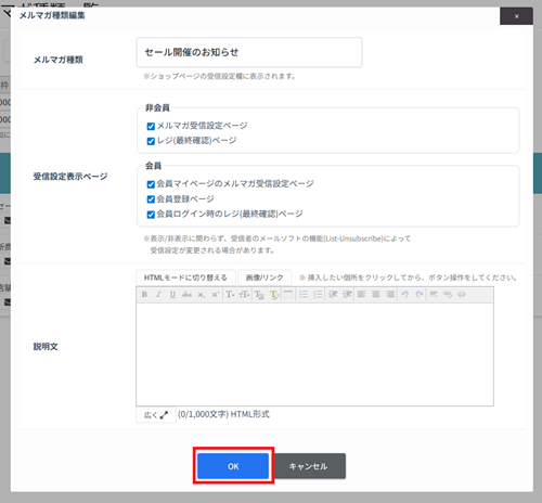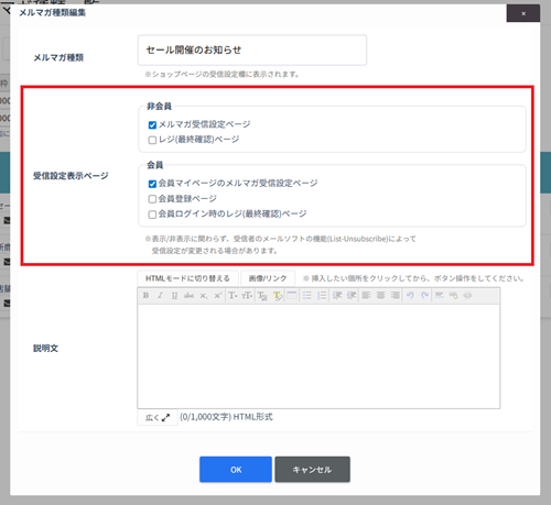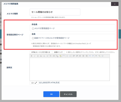 店舗利用者側からメルマガの受信可否を受付できるようにする設定です。